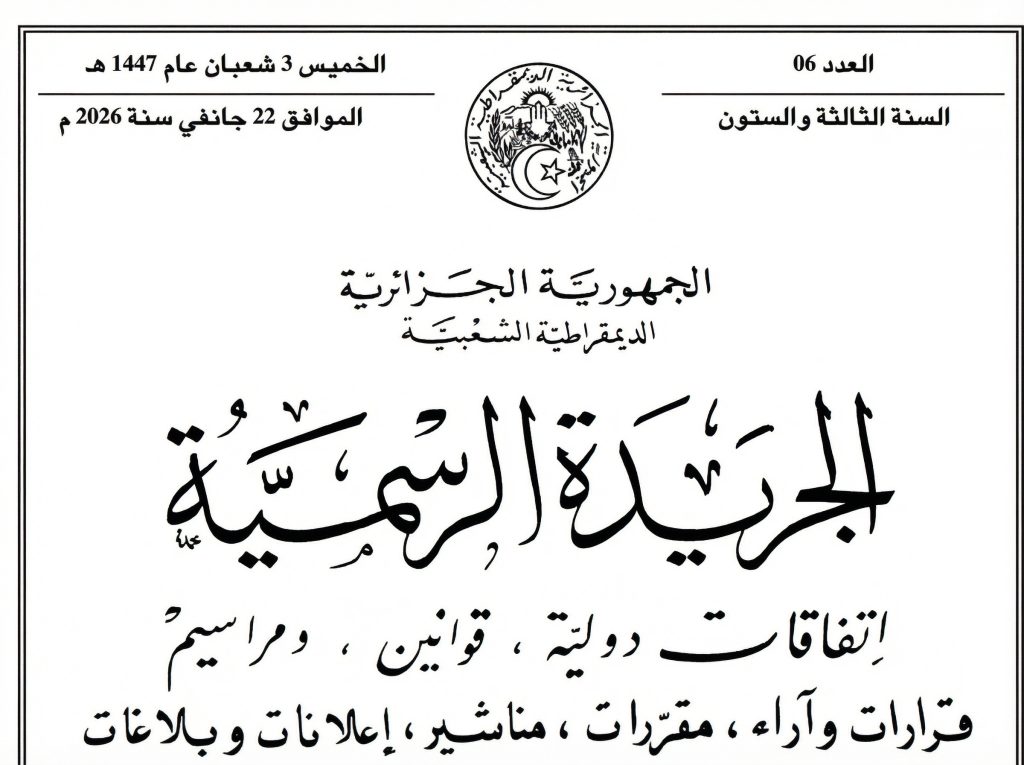 صدر في العدد السادس من الجريدة الرسمية المرسوم التنفيذي رقم 26-68 المؤرخ في 13 جانفي 2026، والذي يحدّد القانون الأساسي