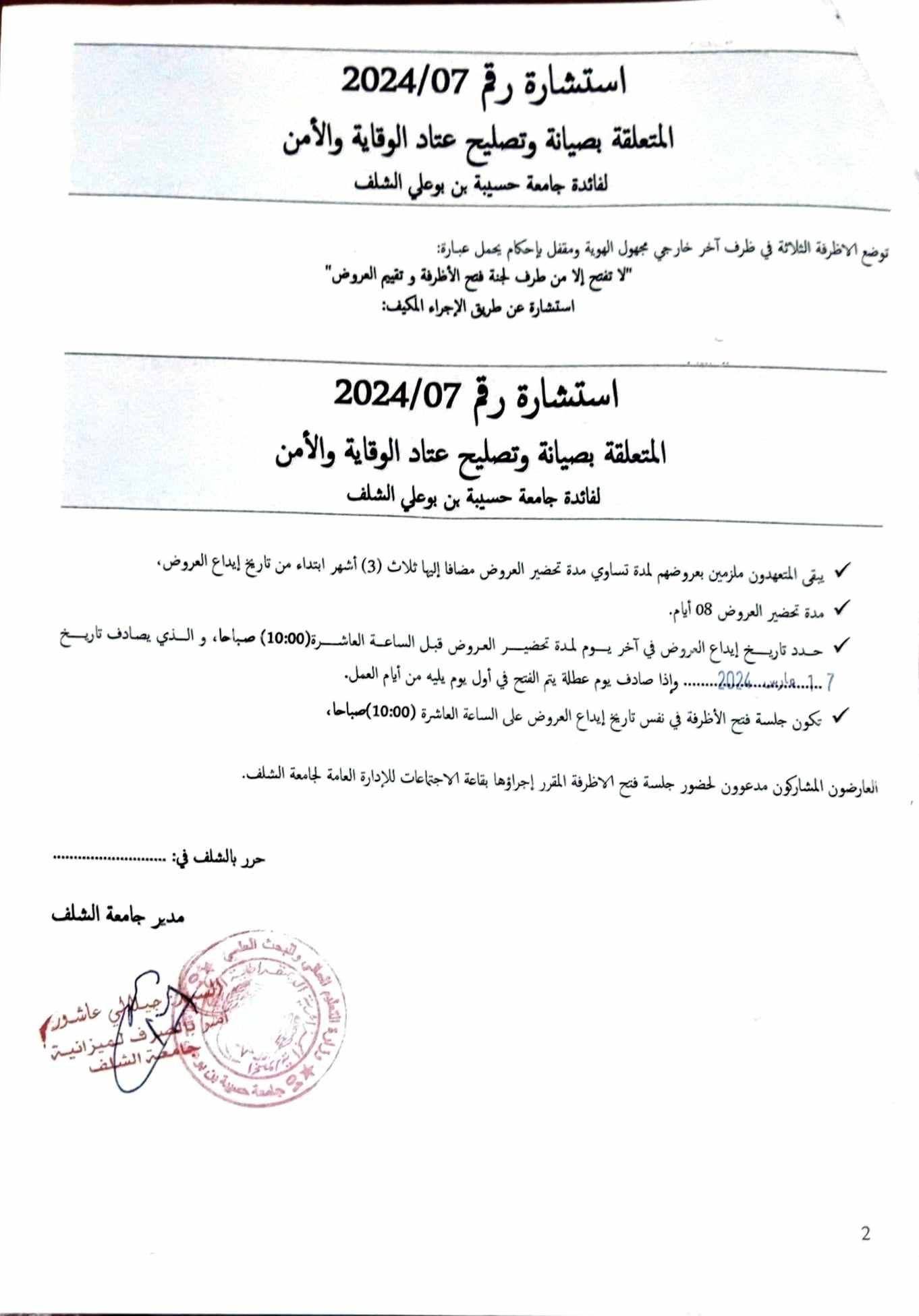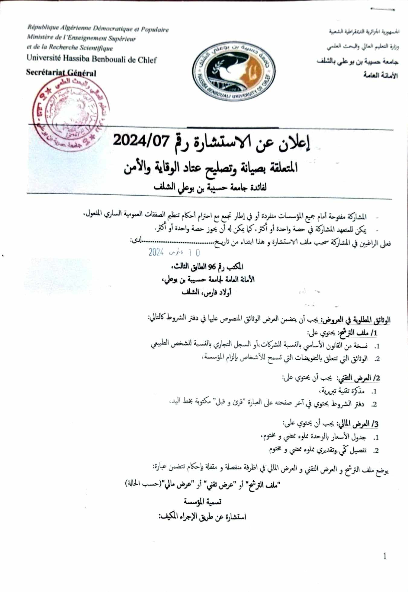 إعلان عن الإستشارة رقم 2024/07