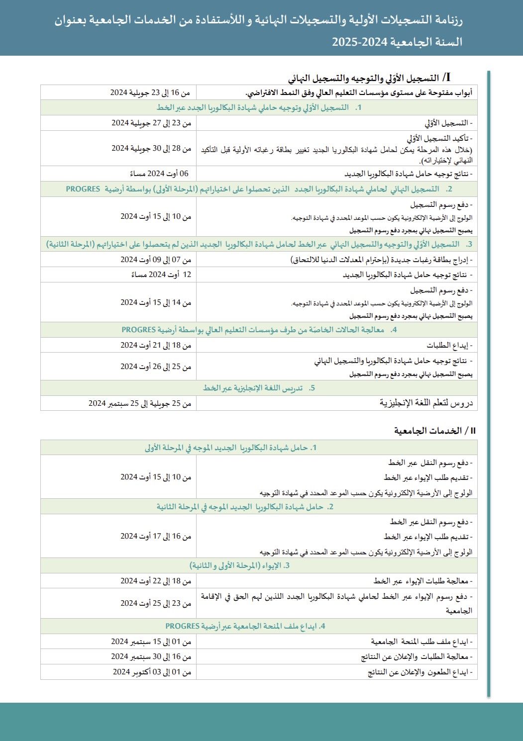 رزنامة التسجيلات الأولية و التسجيلات النهائية و الإستفادة من الخدمات الجامعية بعنوان السنة الجامعية 2025/2024: 14 يوليو، 2024