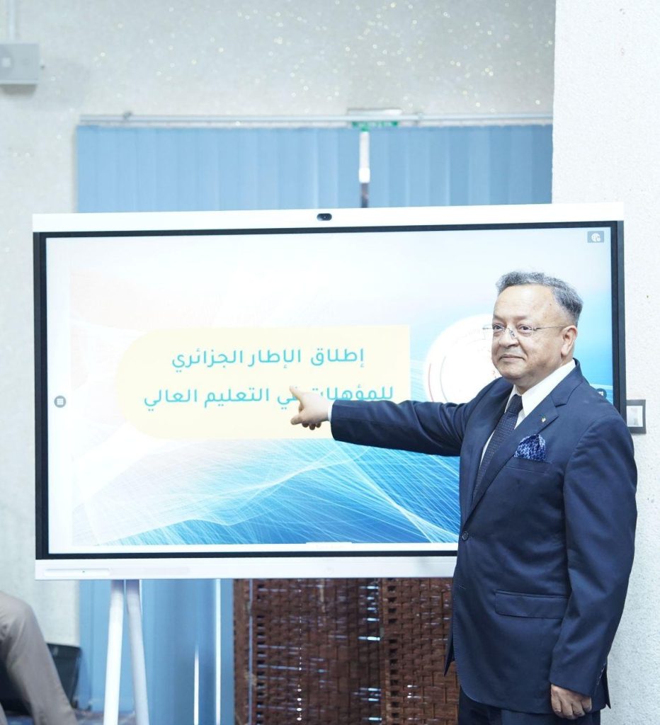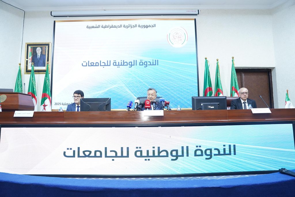 شارك السيد مدير الجامعة البروفيسور العربي غويني في أشغال الندوة الوطنية للجامعات التي انطلقت فعالياتها يوم 01 جويلية 2025 بمقر وزارة التعليم العالي و البحث العلمي، والتي أشرف على إفتتاحها وزير التعليم العالي و البحث العلمي البروفيسور كمال بداري بمشاركة مدراء المؤسسات الجامعية الذي أعلن بالمناسبة عن الاطلاق الرسمي لأول اطار جزائري للمؤهلات في التعليم العالي.