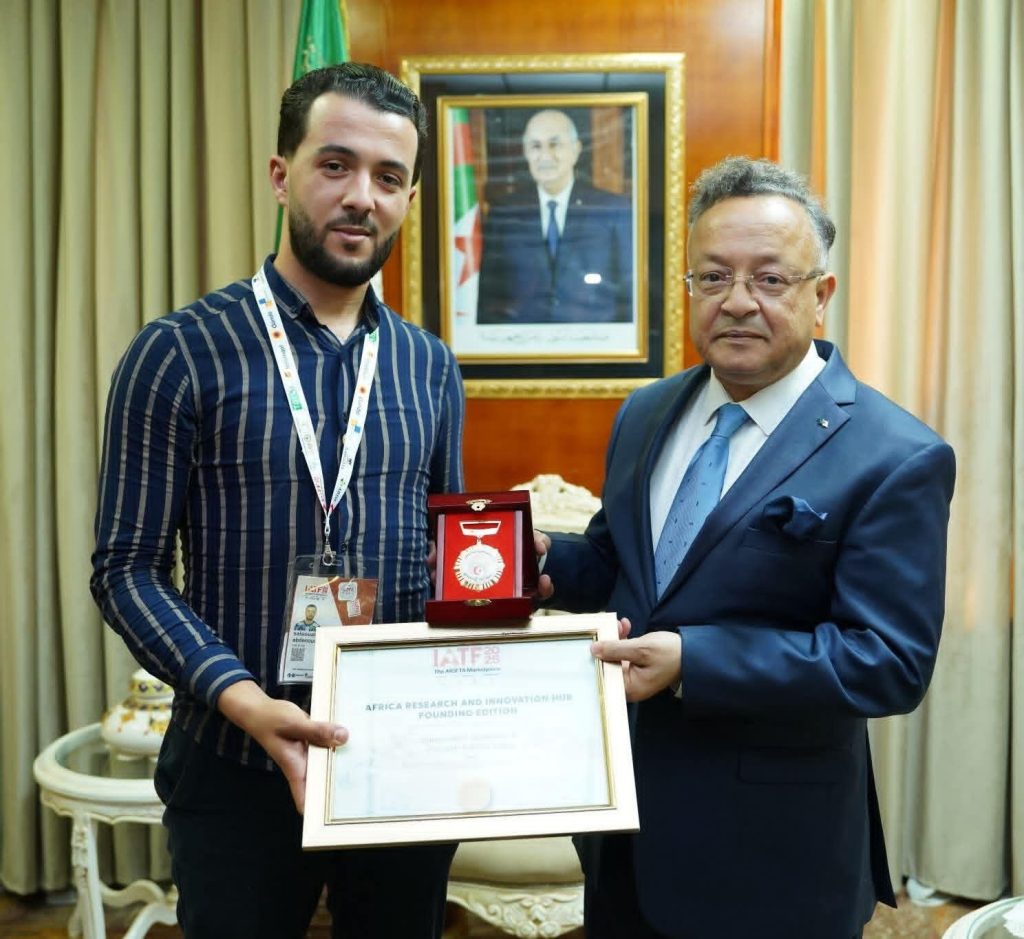 تبعاً للتتويج الإفريقي الذي حظيت به جامعة الشلف بمعرض التجارة البينية الإفريقية IATF2025، كرم السيد وزير التعليم العالي والبحث العلمي البروفيسور كمال بداري الطالبين شويب فاطمة الزهرة و صلواتشي عبد النور بوسام استحقاق، نظير تألقهما ونيلهما للمرتبة الثالثة من بين 2000 مشروع افريقي مسجل خلال المعرض بمشروعهما الابتكاري (VALAMAR) “فرينة وزيوت السمك”.