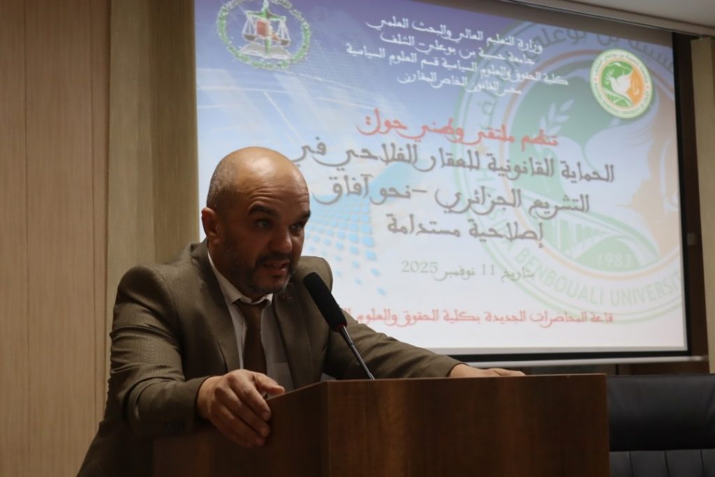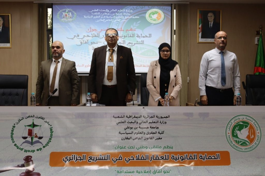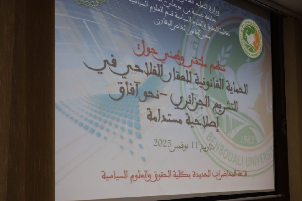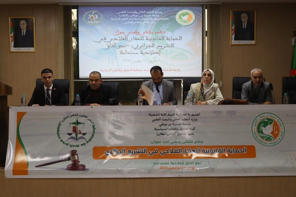أشرف السيد مدير جامعة حسيبة بن بوعلي الشلف، البروفيسور العربي غويني، يوم 11 نوفمبر 2025، على تدشين قاعة المحاضرات الجديدة بكلية الحقوق والعلوم السياسية، تزامنًا مع انعقاد الملتقى الوطني الموسوم بـ “الحماية القانونية للعقار الفلاحي في التشريع الفلاحي”، وذلك تحت إشراف البروفيسور عمّاري إبراهيم، عميد الكلية، والبروفيسور رياحي أحمد، مدير مخبر القانون الخاص ورئيس اللجنة العلمية للملتقى.