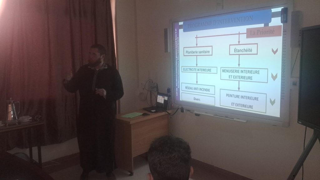 كما شاركت في اللقاء مكاتب الدراسات المكلفة بإعداد مشاريع إعادة تأهيل الأحياء الجامعية، إلى جانب مديري الأحياء المعنية بعمليات التهيئة. وقد تم خلال الجلسة تقديم عرض مفصّل حول أهم الأشغال المقرّر انطلاقها قريباً، مع تقديم نظرة شاملة عن وضعية الهياكل وبرامج التأهيل المعتمدة.