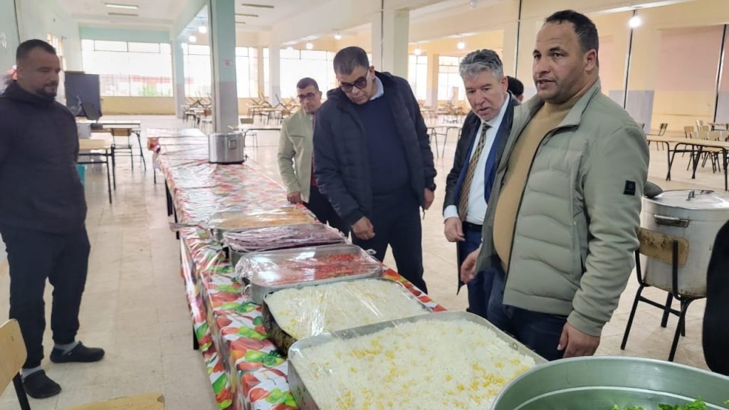 وخلال هذه الجولة، عاين الوفد ظروف التحضير والتوزيع، ومدى احترام معايير النظافة والتنظيم، إضافة إلى الاستماع لانشغالات الطلبة والعمال.
