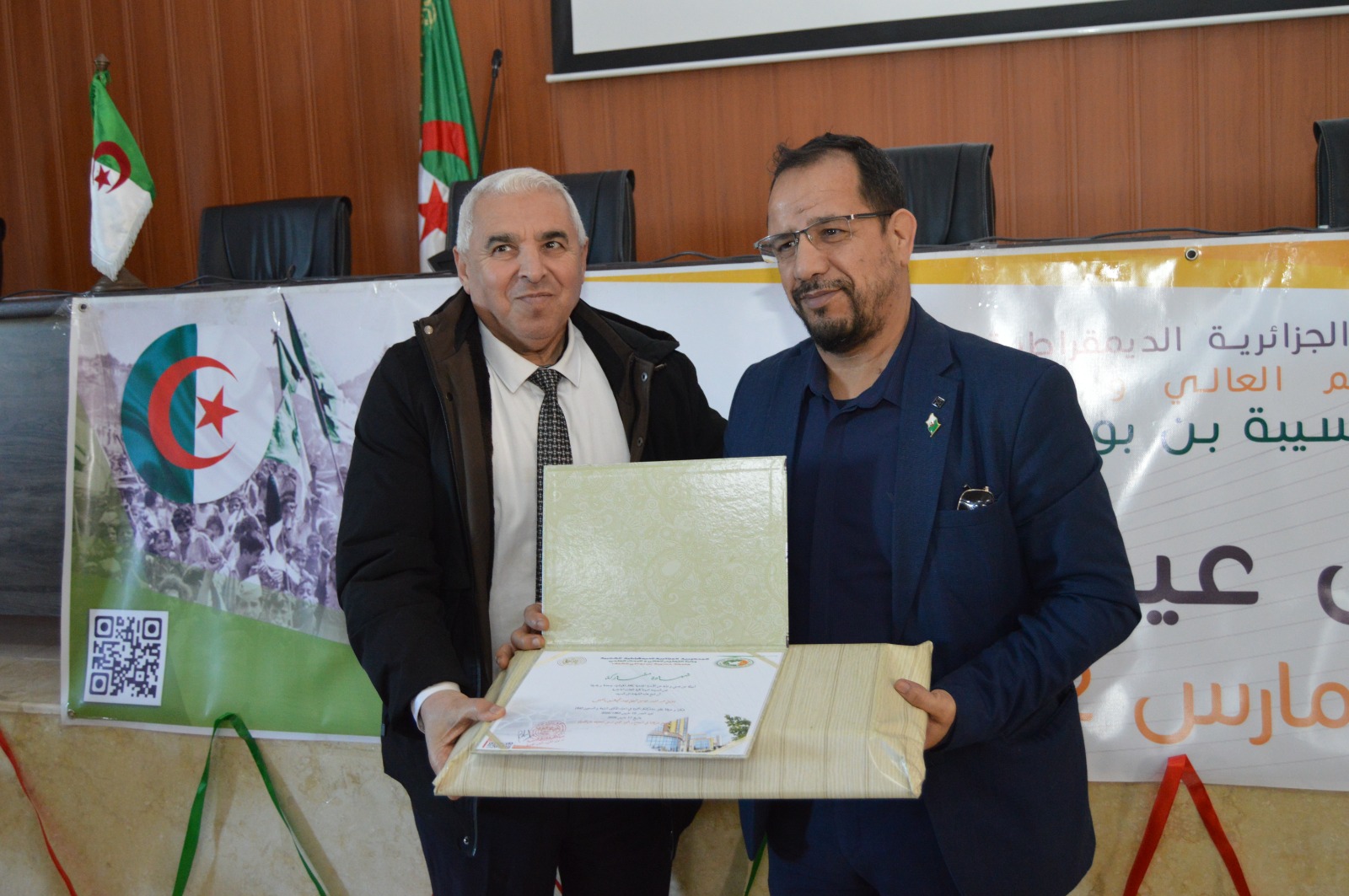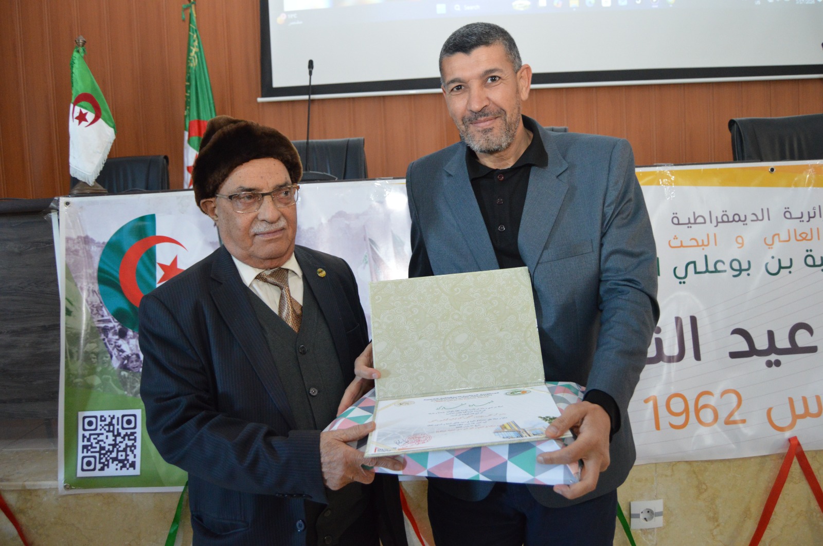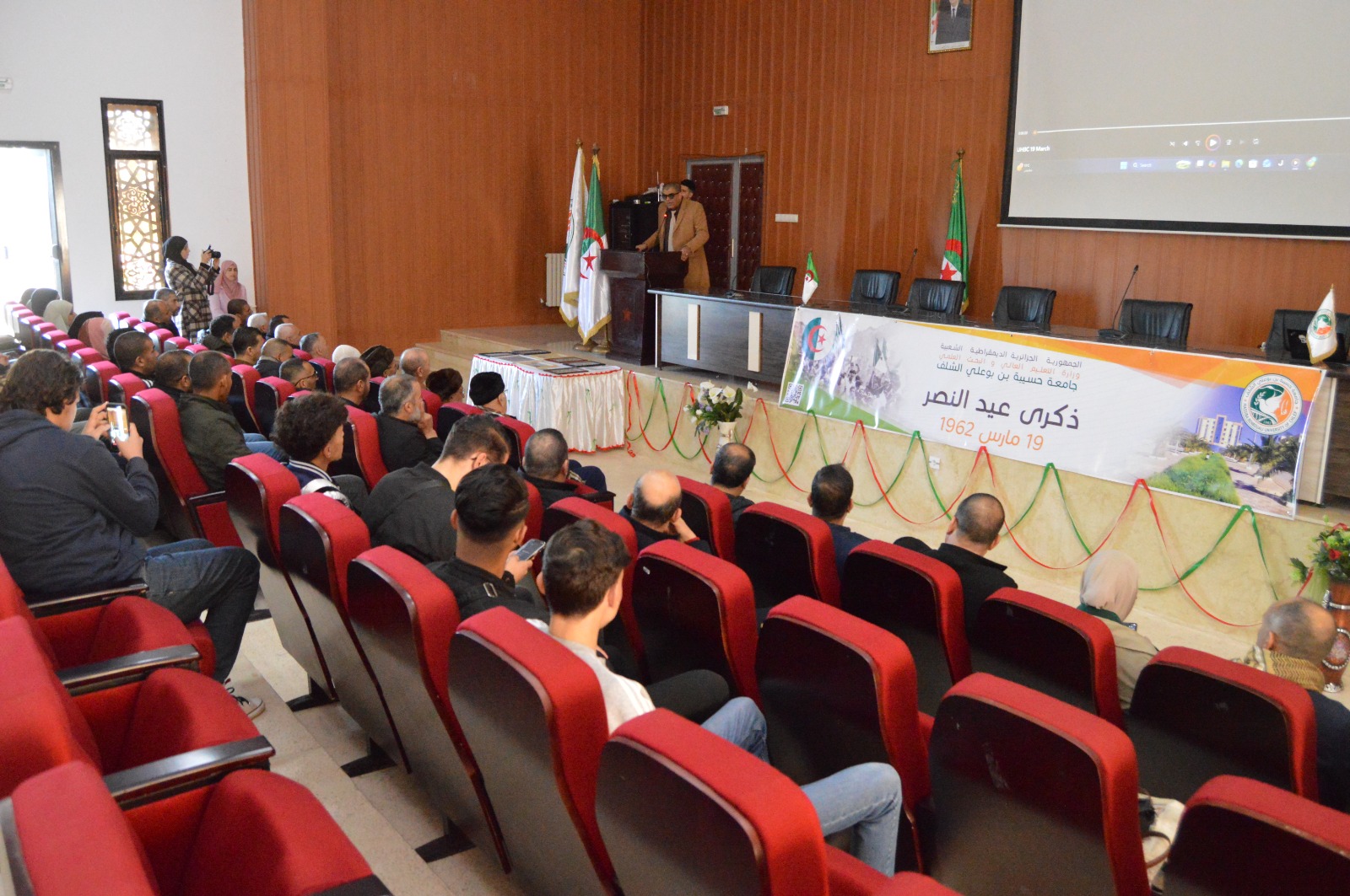 بقاعة المحاضرات بكلية اللغات الأجنبية بأولاد فارس، التأمت الأسرة الجامعية إلى جانب الأسرة الثورية والمجاهدين الأشاوس، رموز التضحية والفداء، في احتفال وطني مهيب يليق بعظمة الحدث وسمو تضحيات الشهداء الأبرار، الذين سَقَوا بدمائهم الزكية أرض الوطن، ومهّدوا دروب الحرية والاستقلال.