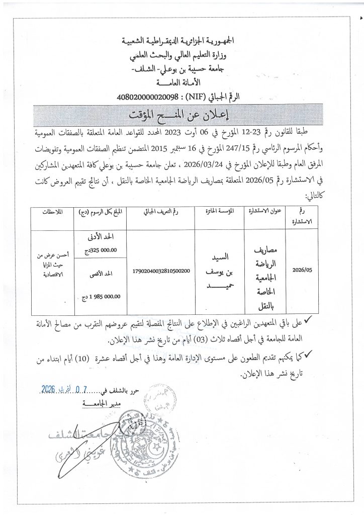 منح مؤقت للإستشارة رقم 05-2026