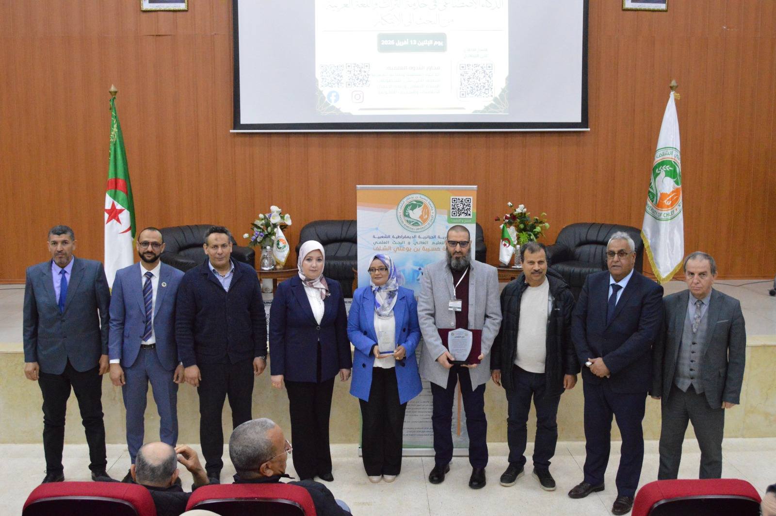تحت إشراف السيد مدير جامعة حسيبة بن بوعلي بالشلف، ممثّلًا في نائبه المكلف بالبيداغوجيا، وبحضور ممثل عن السيد رئيس المجلس الأعلى للغة العربية، الأستاذ كيبير ، نُظّمت ندوة علمية بمبادرة من دار الذكاء الاصطناعي، برئاسة الأستاذ قادري وليد، وذلك بمناسبة يوم العلم، حول موضوع: