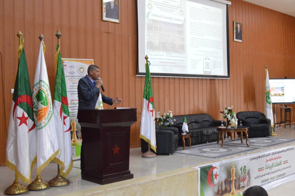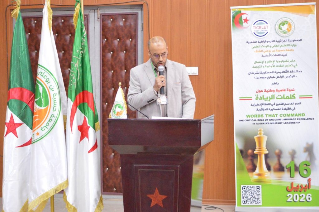 احتفاءً بـيوم العلم، احتضنت جامعة الشلف، تحت إشراف السيد مدير الجامعة البروفيسور العربي غويني، يوم الخميس 16 أفريل 2026، فعاليات ندوة علمية وطنية متميزة نظمها مخبر تكنولوجيا الإعلام والاتصال بكلية اللغات الأجنبية، بعنوان: “Words That Command: The Critical Role of English Language Excellence in Algeria’s Military Leadership”